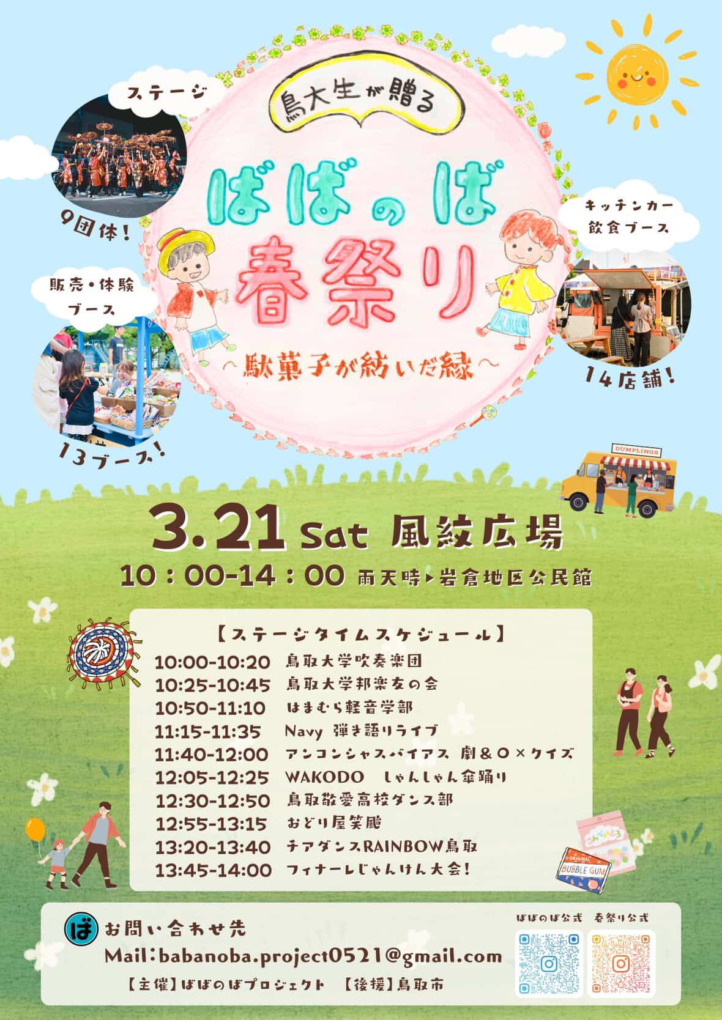 イベント2026.02.23【イベント】「鳥大生が贈る!ばばのば春祭り〜駄菓子が紡いだ縁〜」が3月21日(土)に開催!大学生×地域×駄菓子。ばばのば春祭りが生まれた理由