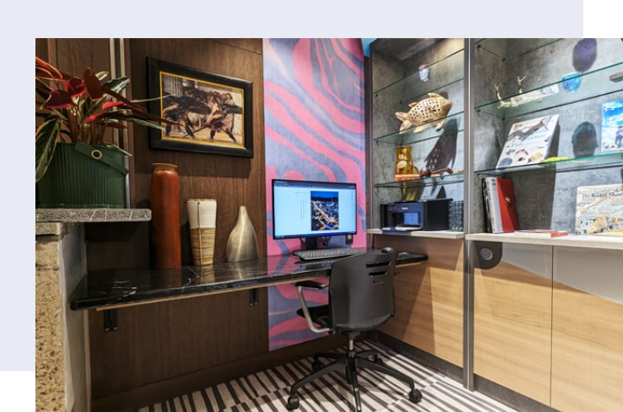 ワークスペース | 新館1階ロビー 個人ブース6部屋、会議室新館2階 カウンターテーブル |