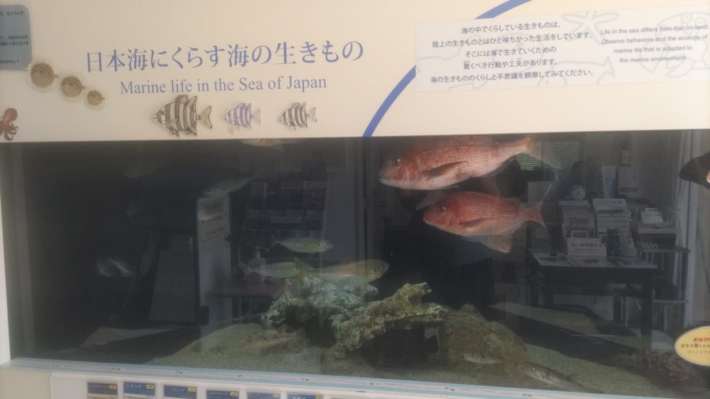 入り口入ってすぐのスペースには、近隣の海や磯に住む生き物を展示した水槽があります。