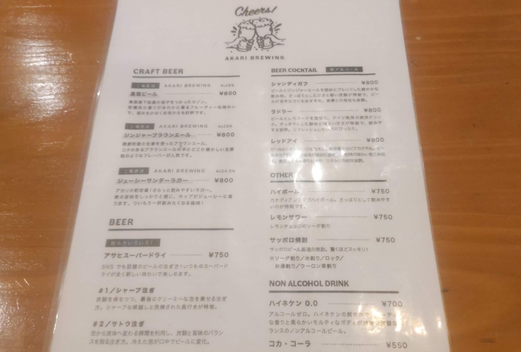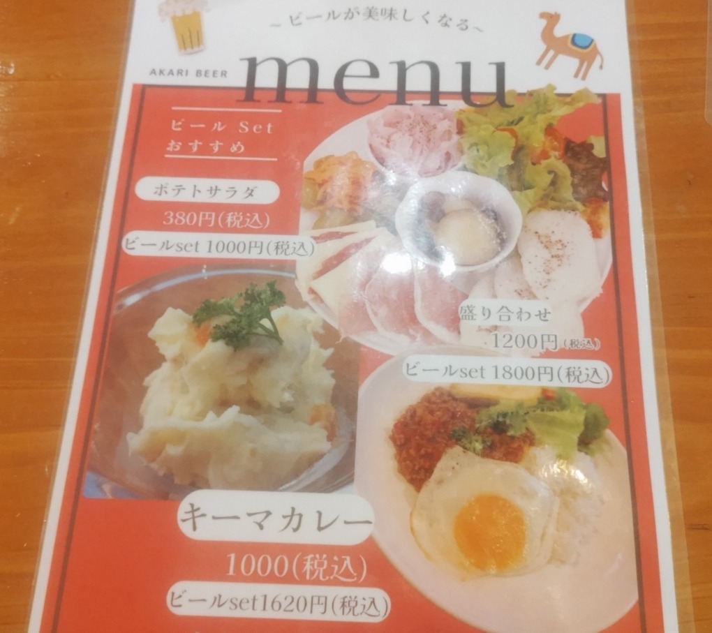 Beer Bonds AKARI・メニュー