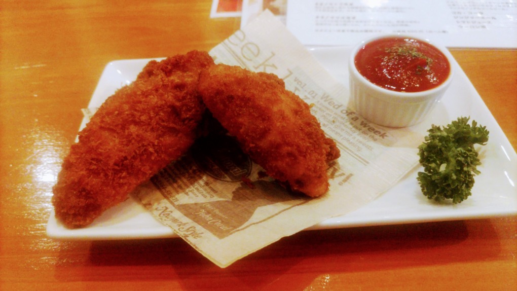 ビールにはやはり揚げ物を。ということで選んだフィッシュフライです。カリカリの衣にたっぷりのケチャップソースを付けると、新鮮な酸味が辛口のビールによく合います。ちょい飲みにぴったりのセットだと感じました。