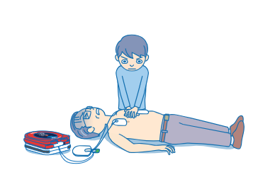 もし、意識がない理由が心停止でない場合、機械が判断して使用を止めるように教えてくれます。心停止の状態である場合には、心臓の乱れた電気信号を整えるように治療を行います。