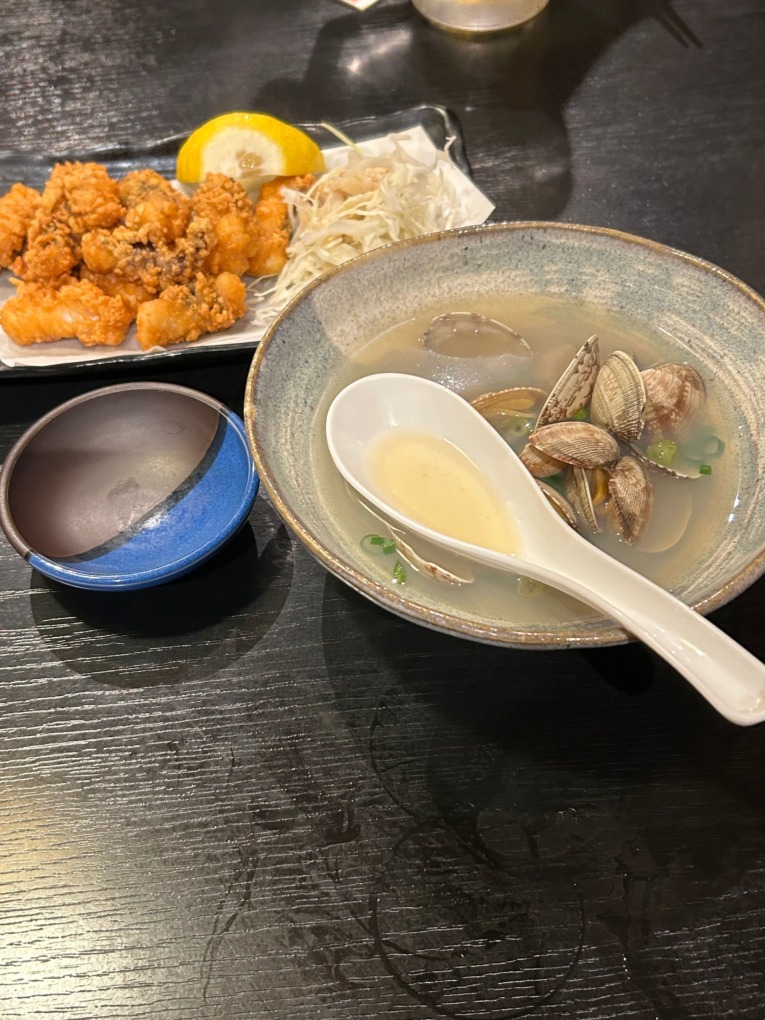 どの料理も本当に美味しく、テーブルに運ばれるたびに歓声が上がるほど。特にアサリの酒蒸しは、ふっくらしたアサリそのものの旨みもさることながら、出汁が最高で、つい汁まで飲み干してしまいました。