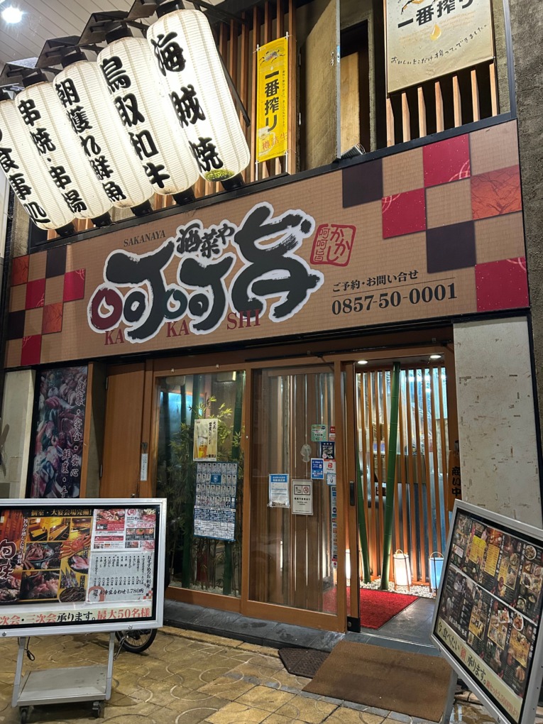 鳥取市栄町にある「酒菜や 呵呵旨(さかなやかかし)」に、知人4人で行ってきました。