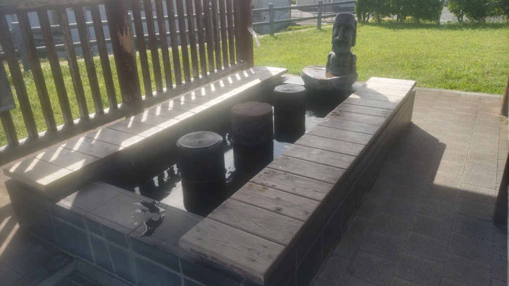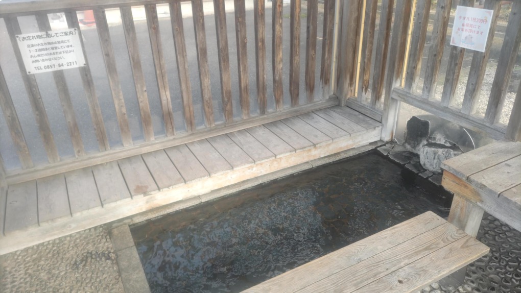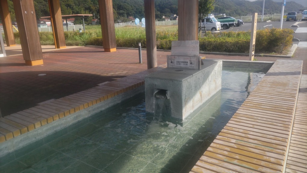 鳥取自動車道、浜村鹿野インターチェンジ近くにある道の駅「西いなば気楽里」内の足湯です。湯船のある道の駅というのは珍しいのだそうです。