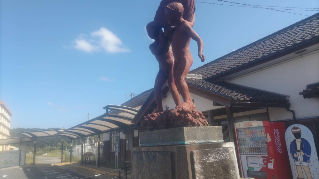JR山陰本線浜村駅の構内に設置されている足湯です。地域に伝わる民謡「貝殻節」をモチーフにした銅像からお湯が湧く設定になっています。天気のよい日に使うと、日差しと風がちょうどよく当たり、体がリラックスします。