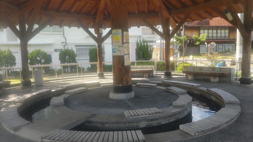 鳥取市気高保健センター「ゆうゆう健康館けたか」の敷地内にある足湯です。ゆっくりつかることで、肩こりや胃腸の不調改善効果が期待できるようです広々とした円形で、座席が多いことが特徴です。