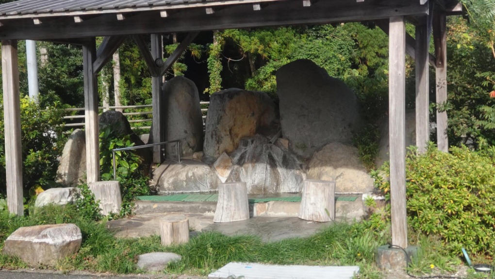 鹿野温泉で宿泊や食事に利用できる国民宿舎「山紫苑」の前にあるバス停付属の足湯です。近隣の方がバスを待つ間に使ったり、温泉に来たお客さんが散策の途中で寄ったりする足湯のようです。