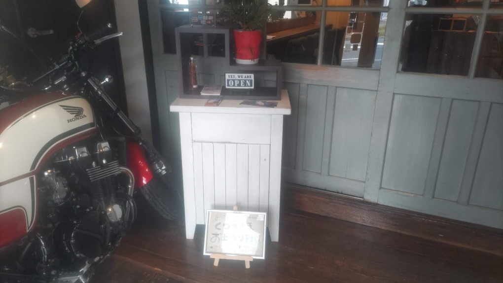 入口を入ると、頑丈なガラス窓の引き戸の前に玄関のようなスペースがあります。靴のまま入っても大丈夫なようです。