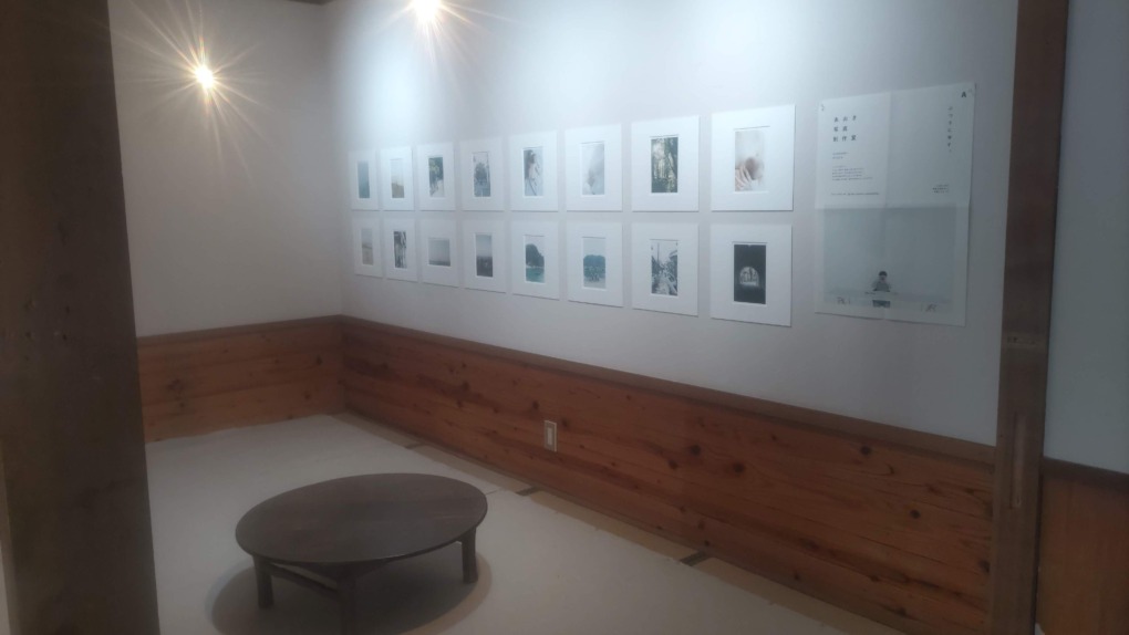 鳥取市川端商店街の街角にある古民家の一階を利用して、写真作品の壁面展示を鑑賞できます。お隣はGatherというバーになっています。