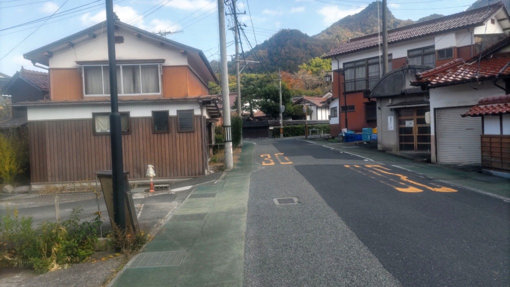 黒い鉄柱のそばに看板が立っていますが、国道沿いに入ってくると反対側になっていて見えづらいかもしれません。鉄柱を目印にゆっくりと進んでください。