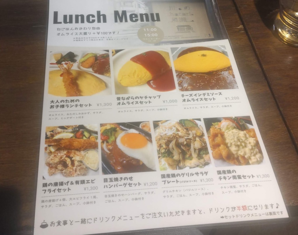 通常のランチメニューです。オムライスを使ったものが印象的ですね。全体的にがっつりめの定食が中心です。男性がいただいても満足できる内容ではないでしょうか。