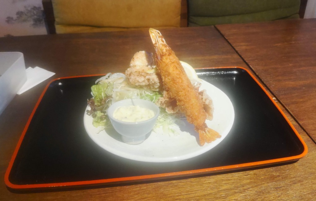 唐揚げと有頭海老フライのセットランチを注文しました。ちなみに、本来はごはんやスープもつきますが、単品で注文しています。