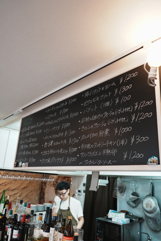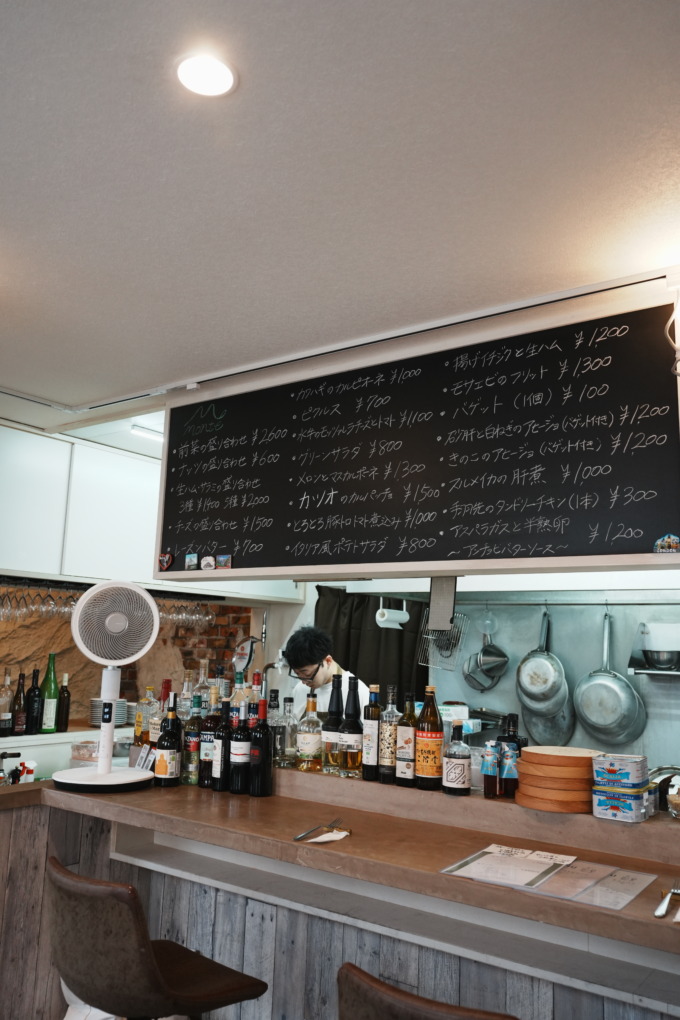 黒板には前菜や魚介料理などの夜メニューも並び、時間帯で表情が変わる店だな、と感じます。