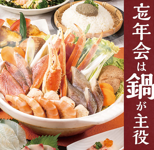 鍋料理のほかに揚げ物やお刺身、サラダなどがついたバランスの良いラインナップが魅力です。お酒を飲む方も飲まない方も好みの料理を楽しめるプランとなっています。