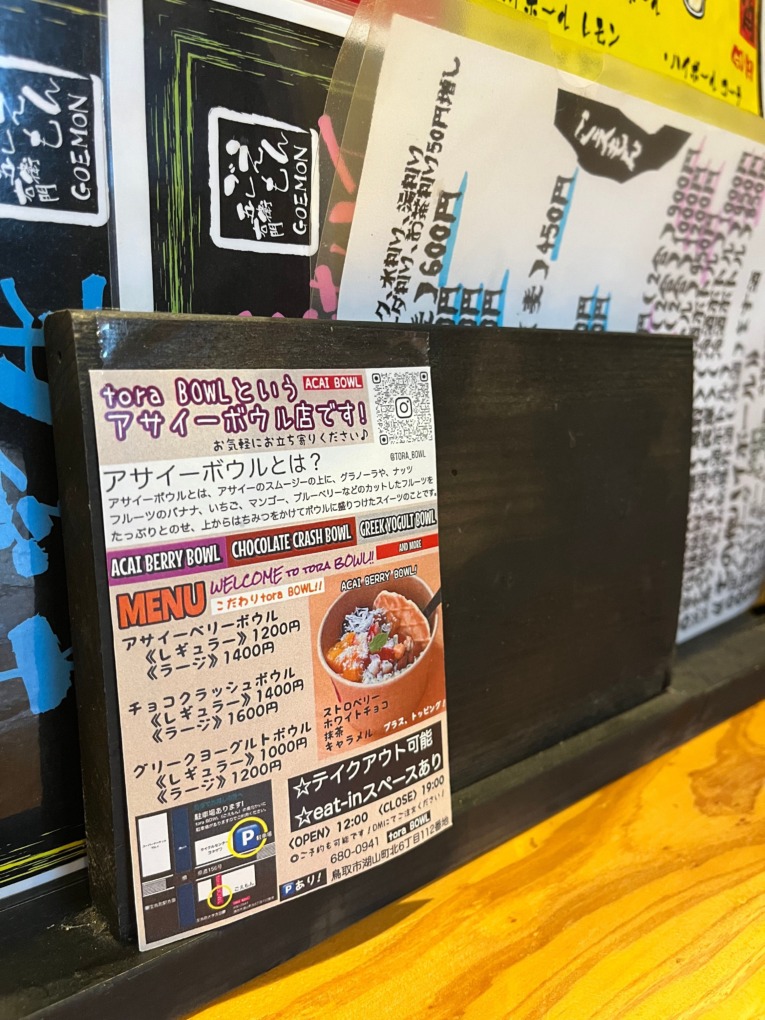鳥取市湖山町に新しくできたアサイーボウル専門店「tora BOWL」さん。