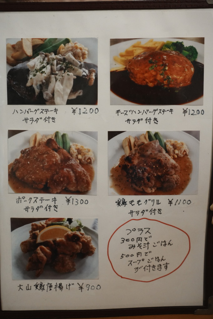 豊富な洋食メニューが揃っており、ハンバーグやステーキ、パスタ、カレーなど、誰もが食べたい定番料理が並びます。
