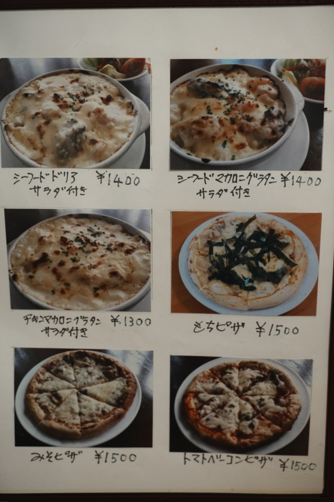 メニュー表にはドリアやグラタン、ピザまで揃っており、まさに洋食好きにはたまらないラインナップ。ドリンクやスイーツも用意されているので、食事だけでなく喫茶利用にもぴったりです。