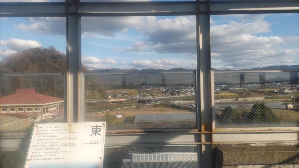 東西南北の方向を示す看板と、周辺の山や遺跡、史跡についての案内がありました。奈良時代の遺跡が多く見つかっている以外にも、戦国時代の合戦の舞台となった場所もあるそうです。