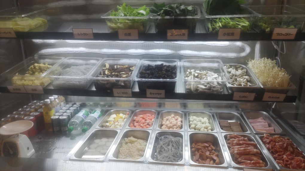 こちらは自分で取り分ける具材のショーケースです。