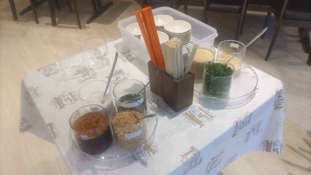 こちらは出来上がった麻辣湯をさらに好みの味にするための薬味のコーナーです。