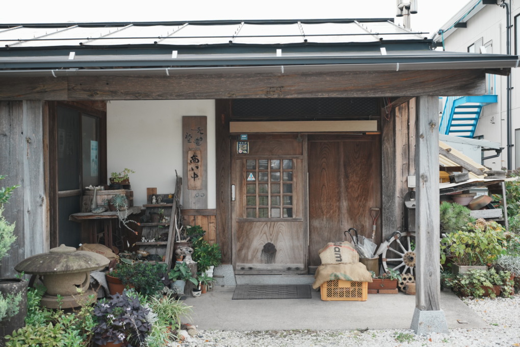 鳥取市千代水にある香豊堂は、静かな住宅に囲まれた、どこか懐かしさを感じる雰囲気のお店です。建物自体は昔ながらの佇まいで、木製の引き戸と植栽に囲まれた外観が印象的。