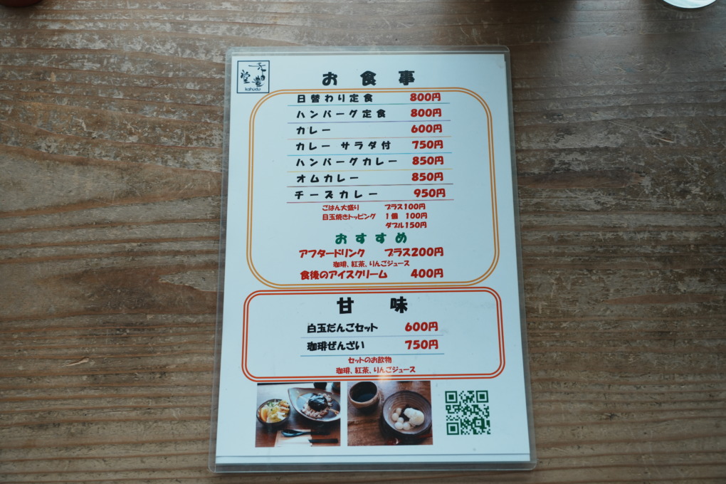 ランチは人気のカレーを中心に、定食や甘味、ドリンクまで揃った家庭的なメニュー構成。価格帯は600〜950円程度と良心的で、学生さんや働く方のランチにも利用しやすい印象です。