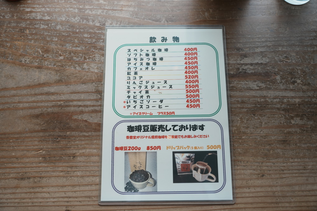 食後のドリンクはプラス200円で追加でき、コーヒーや紅茶、ジュースなどから選べます。また、お弁当の販売もされており、営業中に受け取りできます。忙しい日でも香豊堂の味が楽しめるのは嬉しいポイントです。