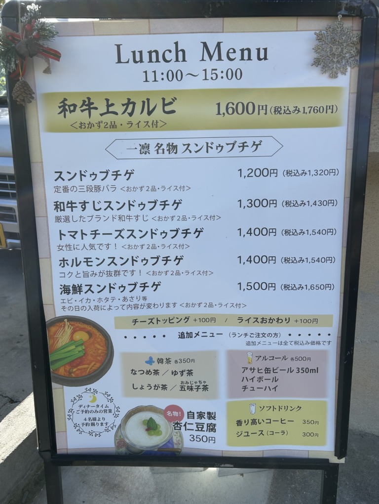 ランチメニューを見ると、スンドゥブチゲの種類がとにかく豊富。
