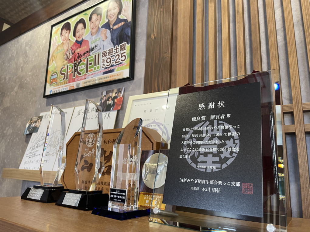 こちらのお店の大きな特徴は、宮城県を代表する最高品質のブランド黒毛和牛「仙台牛」を使用していること。仙台牛は、日本食肉格付協会の厳しい基準により、最高ランクである「A5」または「B5」に格付けされたものだけが名乗ることを許された、まさにトップクラスの和牛です。きめ細かな霜降りと、脂の甘み、そしてとろけるような食感が魅力で、多くの人を魅了しています。