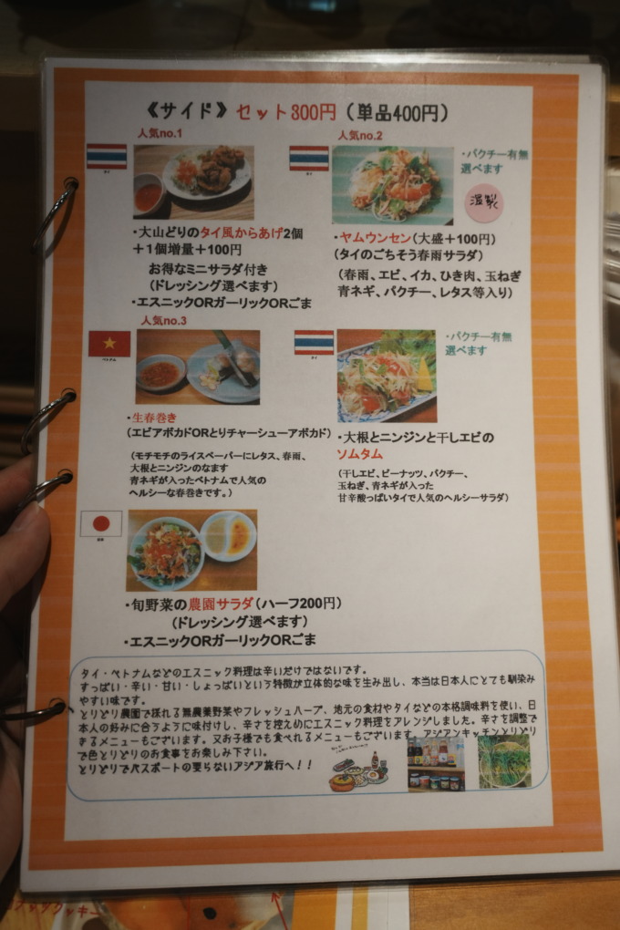 サイドは大山どりのタイ風からあげ、生春巻き、ヤムウンセン、農園サラダなどから選択可能で、自分だけのランチセットを作れるのが楽しいところ。