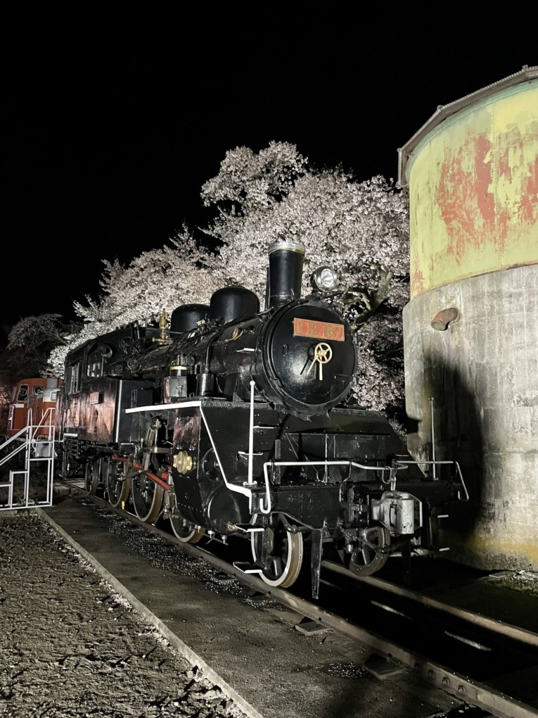 1. 昭和レトロな駅舎とSL、そして夜桜の共演|若桜鉄道 若桜駅