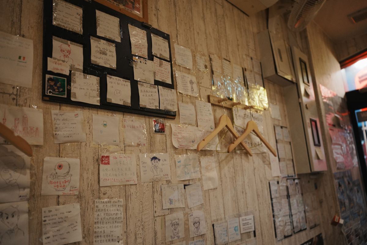 壁には、お客さんが残したメッセージカードがびっしり。国内外から訪れた人が思い思いに残したコメントやイラストが貼られ、待ち時間も退屈しません。観光客も多いことがよく分かる、温かい雰囲気です。