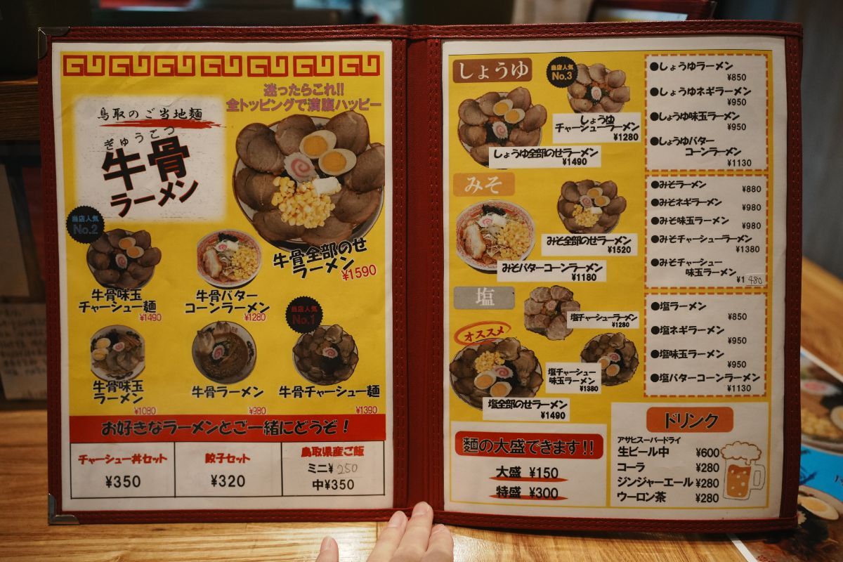 鳥取でしか味わえない「牛骨ラーメン」が看板メニュー。