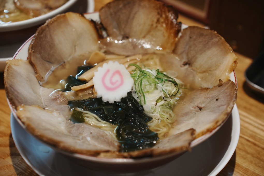 トッピングのネギ・ワカメ・メンマ・ナルトは王道で、あっさりスープを邪魔しない名脇役。特にワカメが口をリセットしてくれるので、最後まで飽きずに箸が進みます。