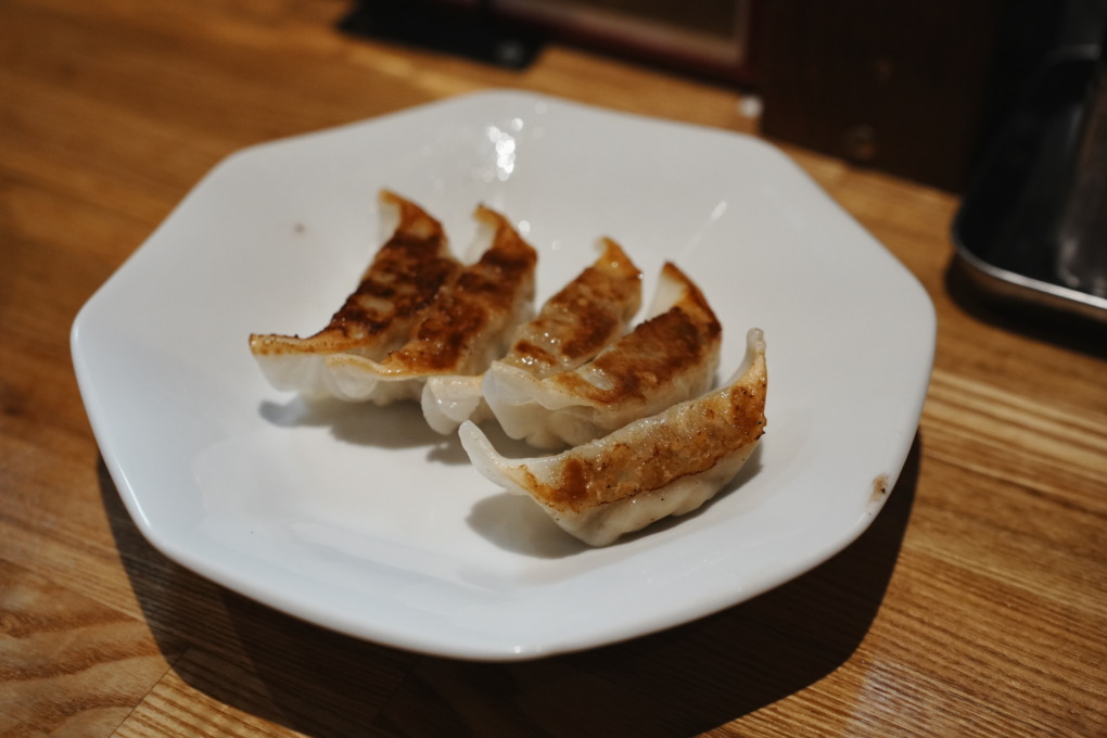 餃子は小さめサイズで皮がもちっと、焼き目はカリッと香ばしい。ラーメンに合わせるとちょうど良い存在感で、セットで頼む価値ありです。