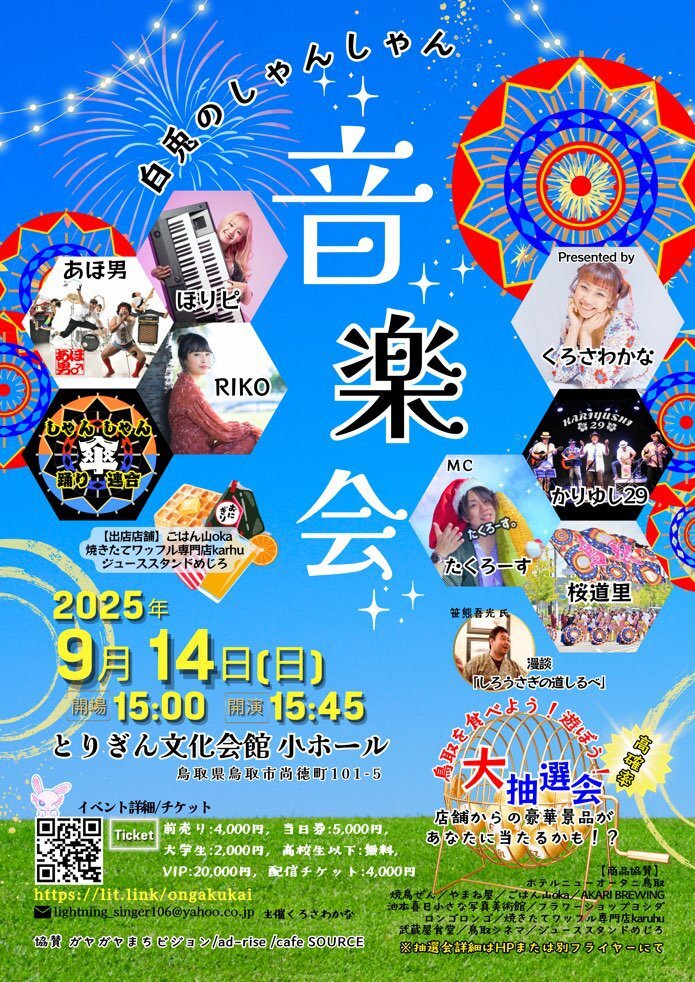 鳥取のアーティストが、鳥取の中心から音楽を奏でます!豪華な景品があたる大抽選会も開催!