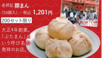 | 老祥記 豚まん | ・12月4日(木)・7(日)の2日間限定 ・15時から販売開始 |