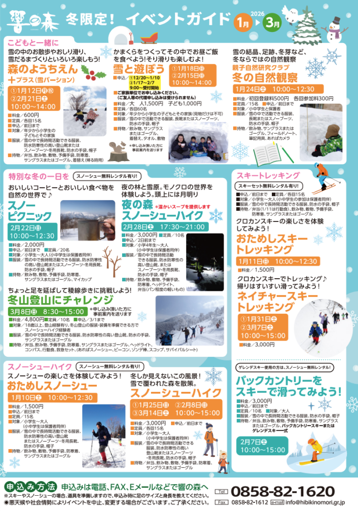 各イベントへの参加は事前予約が必要です!しっかりチェックして、冬の鳥取を満喫しましょう🏂