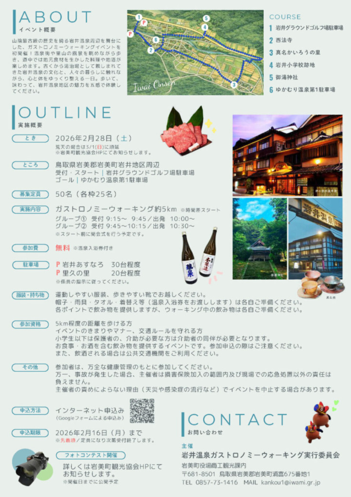 山陰最古級の歴史を誇る岩井温泉周辺を舞台に、初の「ガストロノミーウォーキング」が開催🚶
