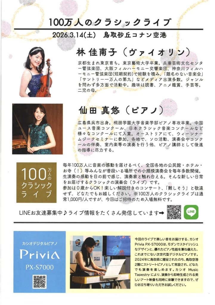 更新日:2026.03.12「100万人のクラシックライブ 鳥取空港公演」開催【入場無料】
